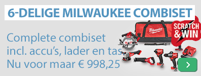 Zolang de voorraad strekt scoor jij een compleet 6-delig combipakket van Milwaukee voor slechts € 998,25. Deze set komt inclusief 2x 5,- Ah accu's, lader en tas. Compleet pakket om direct thuis aan de slag te gaan.Bekijk de deal >