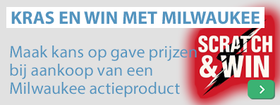 Koop je in september voor minimaal € 100,- (ex btw.) aan Milwaukee producten, dan kom je in aanmerking voor deelname aan de Kras en Win actie op de Milwaukee website. Bekijk het aanbod >