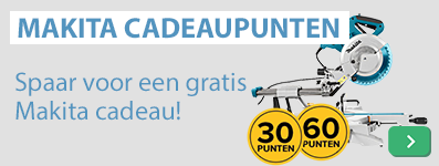 Bij aankoop van een actieartikel ontvang je tot en met 30 november actiepunten. Deze kun je op de Makita cadeauwinkel gebruiken voor gratis extra's en machines om je set nog verder uit te breiden. Lees de actievoorwaarden op https://www.makita.nl/aanbieding . Bekijk het actieaanbod >