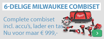 Zolang de voorraad strekt scoor jij een compleet 6-delig combipakket van Milwaukee voor slechts € 999,-. Deze set komt inclusief 2x 5,- Ah accu's, lader en tas. Compleet pakket om direct thuis aan de slag te gaan.Bekijk de deal >