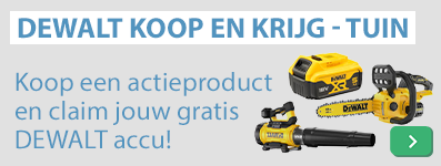 Koop tussen 1 maart en 30 juni één van de DEWALT Outdoor actieproducten en claim jouw gratis accu bij DEWALT na het registreren van je machine. Kijk voor de actievoorwaarden op de website van DEWALT. Bekijk de actieproducten >