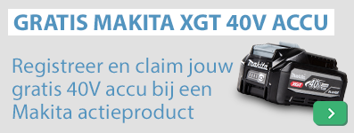 Koop t/m 30 september een XGT powertool uit het actieaanbod van Makita en claim jouw gratis 40V 4.0 AH XGT accu door te registreren bij Makita.Ga naar het actieaanbod >.