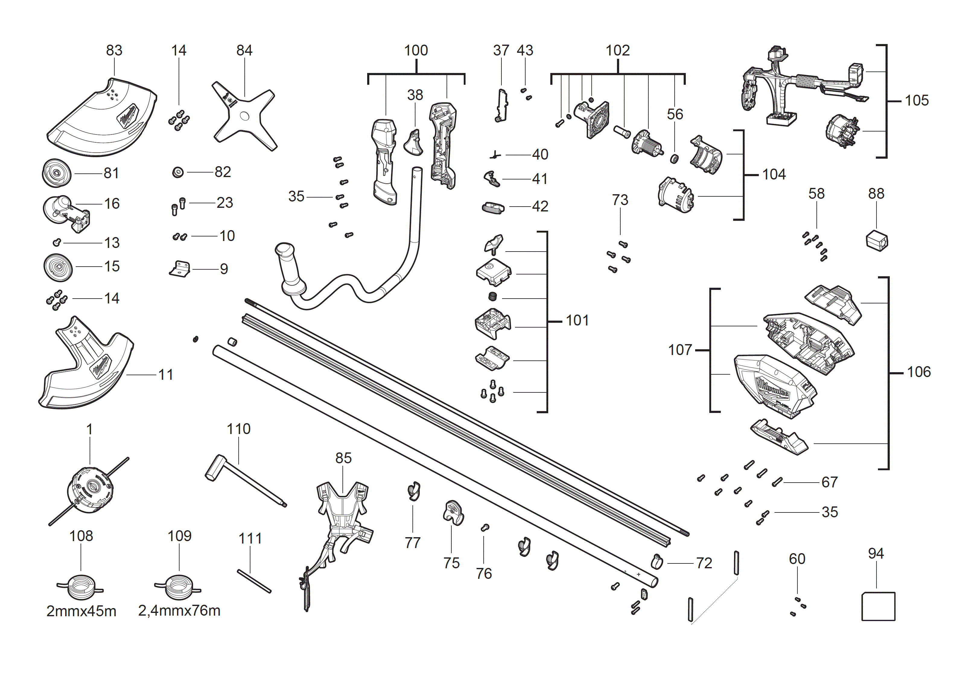- Trimlijndiameter: ø 2.0/ 2.4 mm