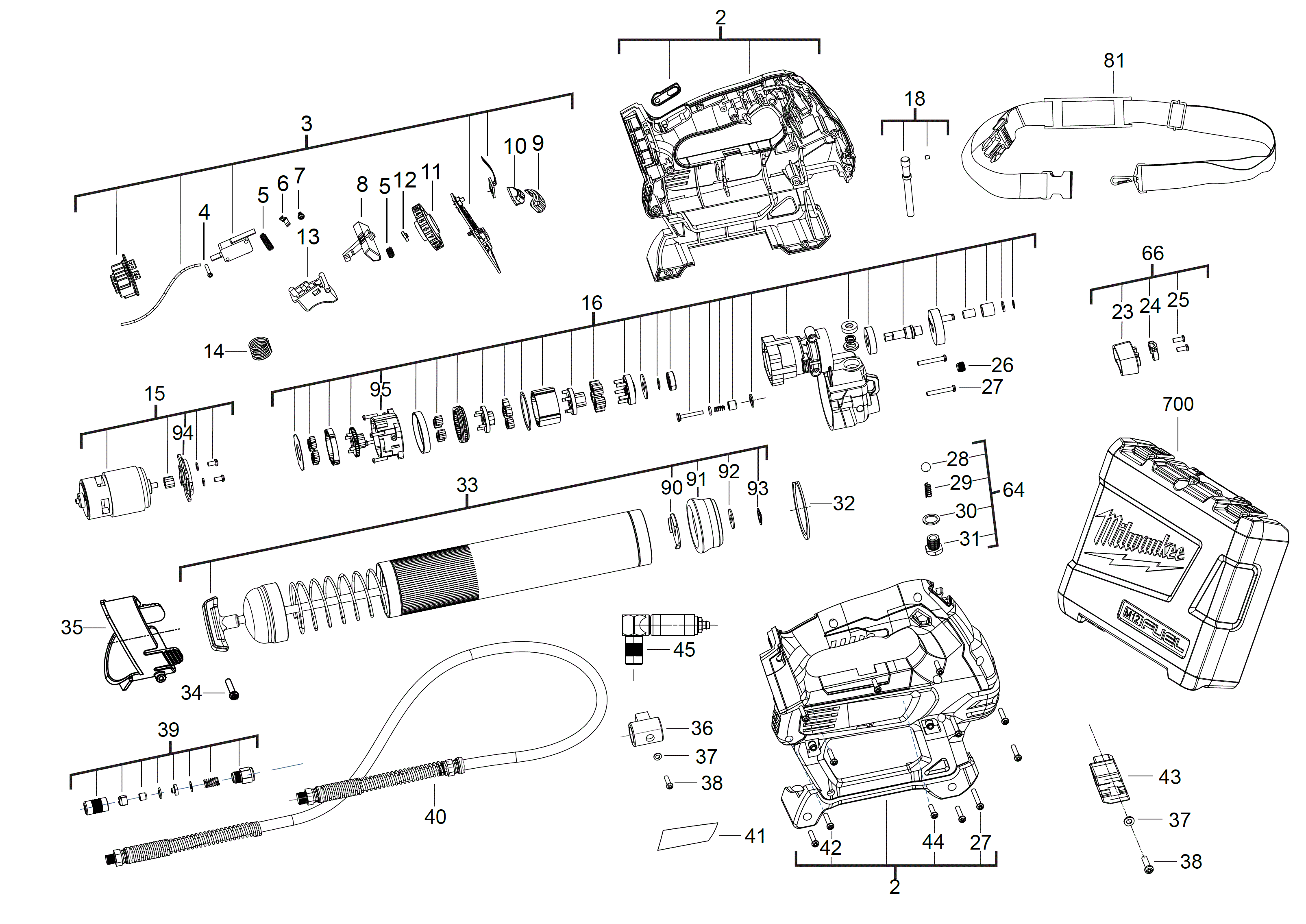De Milwaukee M18 GG-0 vetspuit is een krachtige 18V machine met een maximale werkdruk van 690 bar. De machine is uitgerust met REDLINK™ overbelastingsbeveiligingselektronica en heeft een extreem lange looptijd van tot 7 patronen per lading. De vetspuit is ergonomisch ontworpen en heeft een superieure balans, met een lengte van slechts 355 mm en een gewicht van 3,9 kg. De machine is voorzien van een ontluchtingsventiel, geïntegreerde slangopslag, schouderlus en LED-brandstofmeter voor extra gebruiksgemak. De capaciteit van de vetpatroon is 400 ml en het volume is 473 ml. De machine werkt met alle MILWAUKEE® M18™ accu’s, maar er worden geen accu’s of lader meegeleverd. Het geluidsdrukniveau is 73 dB(A) en het vibratieniveau is minder dan 2,5 m/s².